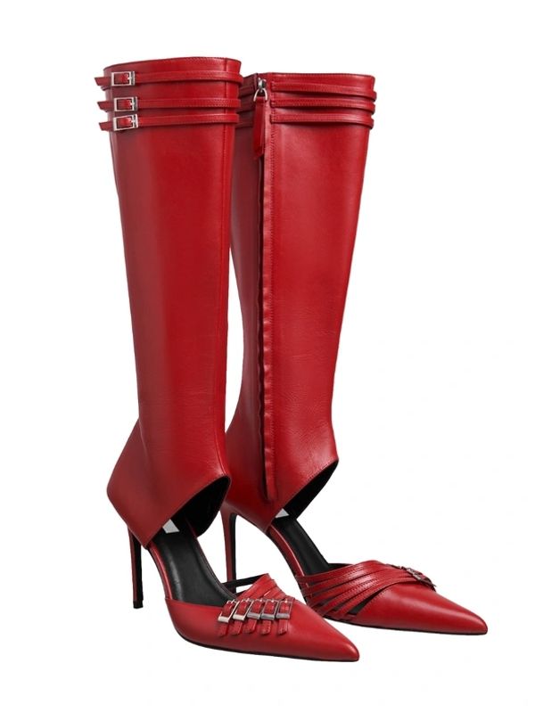 Leather, knee high, pointed toe boots with a 10cm tall stiletto heel.